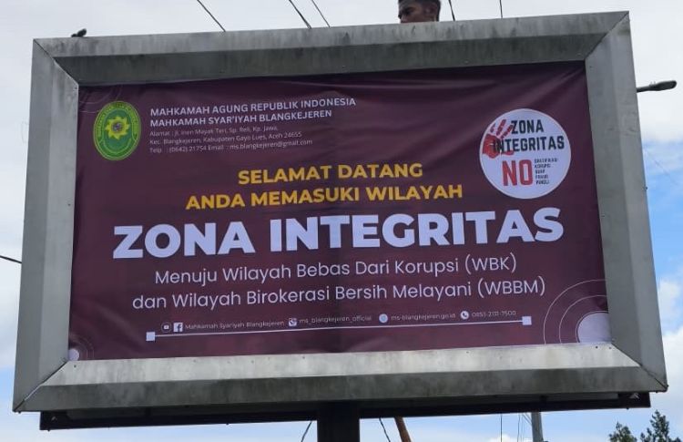 — Mahkamah Syar’iyah Blangkejeren terus menyemarakkan pembangunan Zona Integritas dengan melakukan pembaruan banner Zona Integritas di halaman kantor Mahkamah Syar’iyah Blangkejeren sebagai bagian dari upaya memperkuat komitmen menuju Wilayah Bebas dari Korupsi (WBK) dan Wilayah Birokrasi Bersih dan Melayani (WBBM).