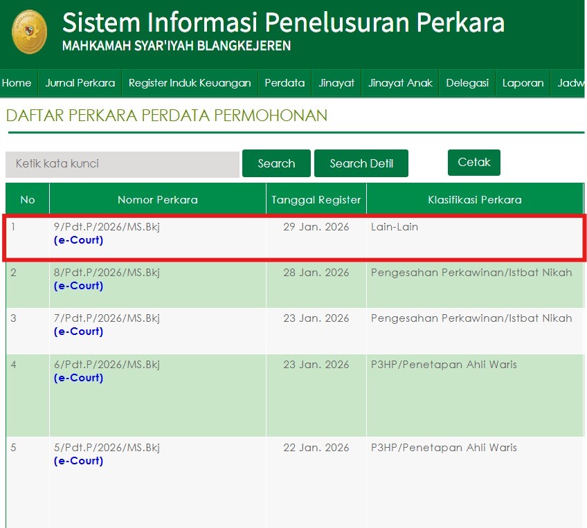 Blangkejeren, Gayo Lues, 30 Januari 2026 — Mahkamah Syar’iyah Blangkejeren mencatat permohonan pengangkatan anak dengan Nomor 9/Pdt.P/2026/MS.Bkj, yang diregistrasi pada 29 Januari 2026. Perkara pengangkatan anak di Mahkamah Syar’iyah Blangkejeren tergolong jarang terjadi. Berdasarkan data Sistem Informasi Penelusuran Perkara (SIPP), dalam kurun enam tahun terakhir, pengadilan tersebut hanya menangani dua perkara sejenis.